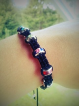 3) Svart armbånd Tråd: Svart nylon- Tilbehør: fargeriker perler, sluttperler. Justerbar størrelse? Ja. |