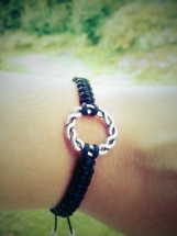 4) Svart armbånd Tråd: Svart nylon- Tilbehør: sølvring, sluttperler. Justerbar størrelse? Ja. |