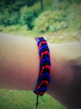 6) Armbånd i fargene Tråd: Svart, rød og blå nylon- Tilbehør: sluttperler. Justerbar størrelse? Ja. |