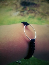 4) Svart armbånd Tråd: Svart nylon- Tilbehør: sølvring, sluttperler. Justerbar størrelse? Ja. |