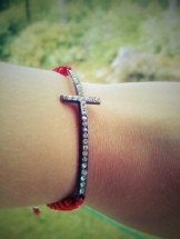 7) Rødt armbånd Tråd: Rød nylon- Tilbehør: sølvkors, sluttperler. Justerbar størrelse? Ja. |